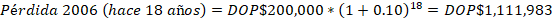 La pérdida de DOP$200,000 anuales que comenzó en 2005 no equivale a DOP$4,000,000 en total (DOP$200,000 x 20 años), sino a DOP$11,455,000 de hoy.